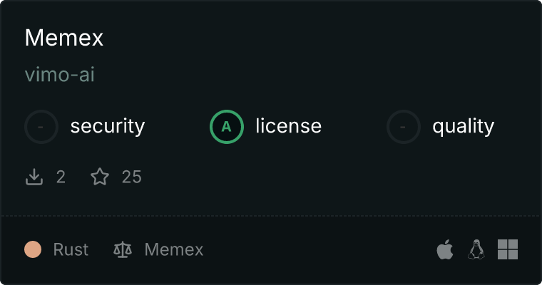 curl -X GET 'https://glama.ai/api/mcp/v1/servers/vimo-ai/memex'