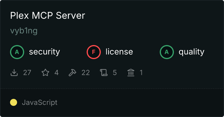 curl -X GET 'https://glama.ai/api/mcp/v1/servers/vyb1ng/plex-mcp'