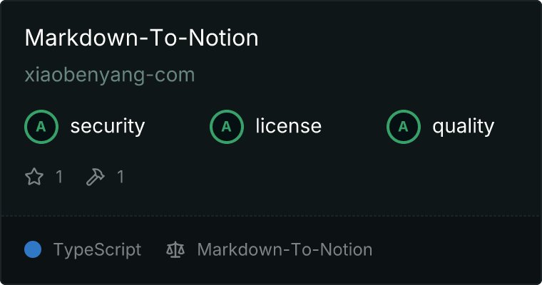 curl -X GET 'https://glama.ai/api/mcp/v1/servers/xiaobenyang-com/Markdown-To-Notion'