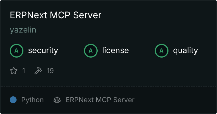 curl -X GET 'https://glama.ai/api/mcp/v1/servers/yazelin/erpnext-mcp'