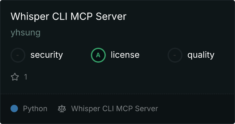 curl -X GET 'https://glama.ai/api/mcp/v1/servers/yhsung/whisper-cli-mcp'