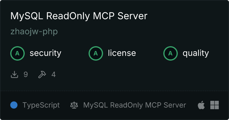 curl -X GET 'https://glama.ai/api/mcp/v1/servers/zhaojw-php/mysql-readonly-mcp'